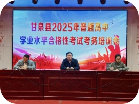 5月7日下午,延安市甘泉县招生办在甘泉县高级中学会议室召开2025年普通高中学业水平合格性考试培训会,本次参会人员有招办全体工作人员及高级中学主管副校长和所有监考老师,会议由高级中学副校长李军主持,甘泉县招办白小玲做详细培训,甘泉县招办副主任李鹏做补充总结,对本次考务工作中注意事项做了强调。