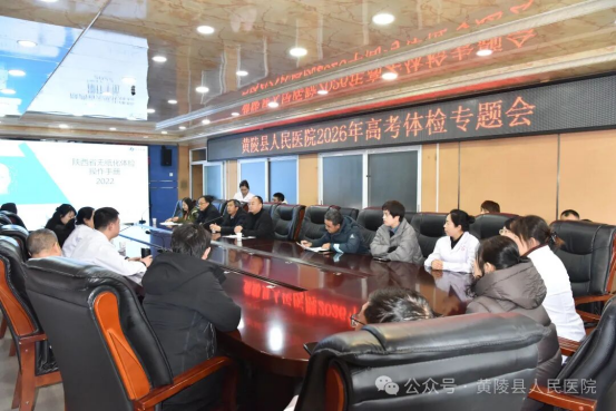 为确保高考体检工作安全、有序进行,1月19日下午,延安市黄陵县2026年高考体检工作专题会议在黄陵县人民医院召开。县招办、黄陵中学、县职教中心和县人民医院领导及相关科室负责人齐聚一堂,共同部署高考体检工作,确保该项工作安全、高效推进。县医院体检科主任孔静主持会议。