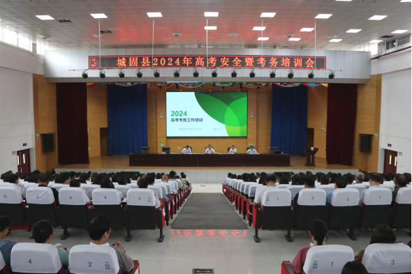 5月31日上午9:00,汉中市城固县召开2024年高考安全暨考务培训会。县委常委、常务副县长黄小康出席会议,会议由县教体局局长苏纪宏主持,县教体局全体领导及下考点人员、县招生办全体人员、承担监考任务的学校校长及全体监考教师、两个考点主考、副主考及考务人员、生源高中学校校长共计450余人参加了会议。