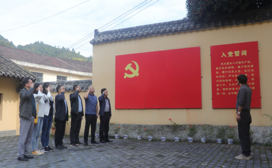 在会址宣誓墙前,面对鲜红的党旗,党员们再一次重温入党誓词,用铿锵有力的宣誓声,表达了守初心、担使命的坚定决心。