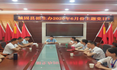 5月25日至6月13日,是汉中市城固县初中毕业升学体育考试的时间。为保证正常的考试秩序,抢抓关键的考试时间节点,城固县招生办党支部力戒党建活动的形式主义,结合城固的工作实际,于6月5日早8:30,在汉中市陕飞二中体育考试考点举行了六月招生办党支部“主题党日+”活动。招生办10名党员和1名入党积极分子参加了会议,单位其他同志列席了会议。