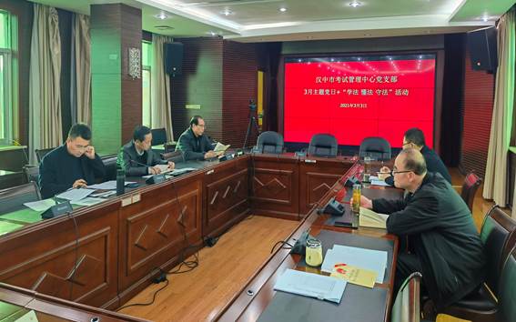 3月3日上午,汉中市考试管理中心党支部开展“学法 懂法 守法”主题党日活动,市考试管理中心、教育工会、学生资助中心全体在职党员参加活动。