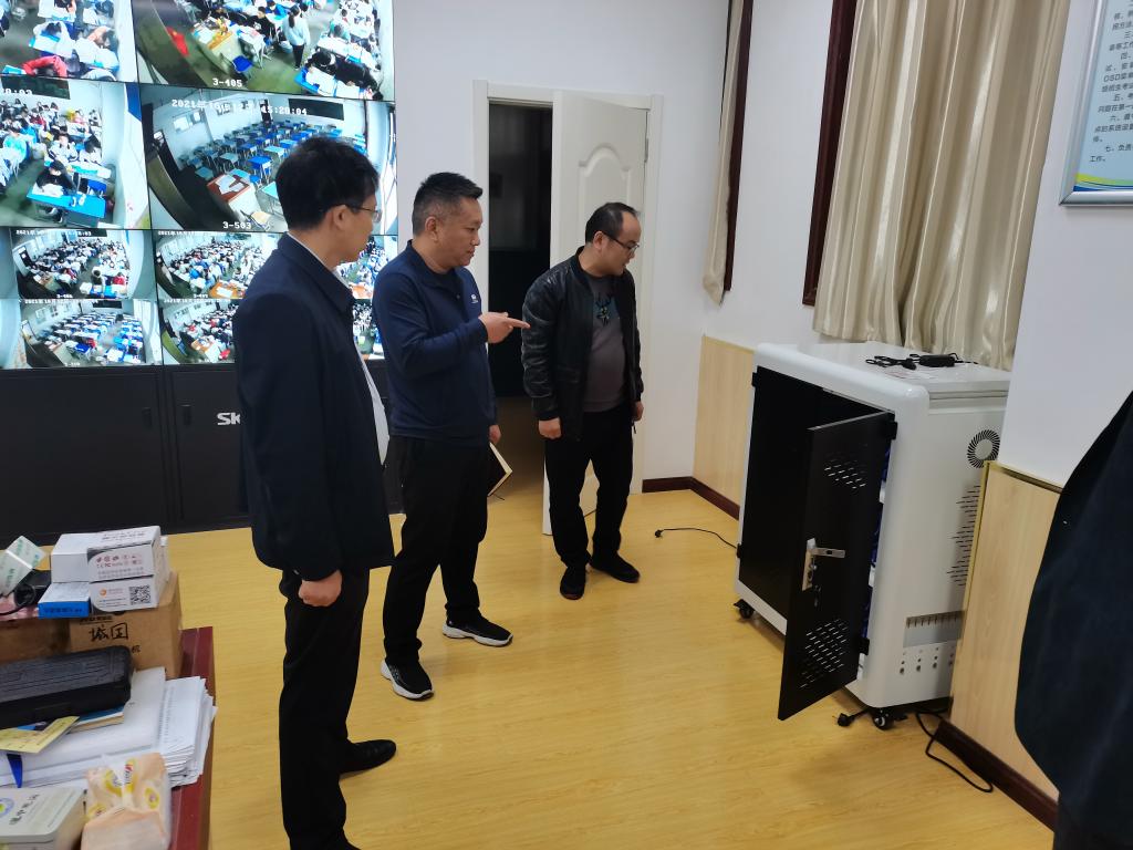 在考点上,胡主任详细询问了各考点的监考、防作弊、安保、疫情防控、电力保障和后勤保障各项工作的准备情况,对视频监控系统和人脸识别系统进行了全面的检查验收,并同考点主考、副主考沟通了10月23、24日在城固县举行的全国成人高考工作的相关细节。