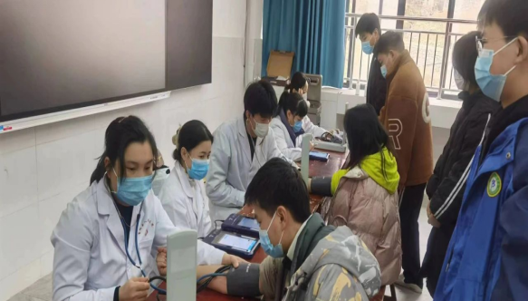 2月9日,紫阳县人民医院医务人员来到毛坝中学,为参加体检的学生完成除胸透检查外的其它项目体检。2月10日至12日,参加体检学生以班级为单位分批次前往毛坝镇中心医院进行胸透检查。
