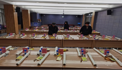 会后,考务人员领取考场布置相关物品,严格按照要求对考场进行布置。相关负责人对现场进行细致的检查,确保考试工作顺利进行。