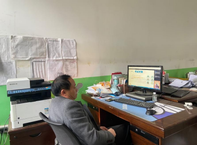蒲溪初级中学信息技术教师正在制作中考报名PPT