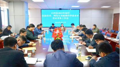 4月11日,安康市白河县召开2023年初中信息技术与理化生实验操作学业水平考试考务工作会。