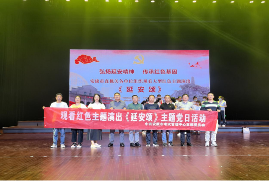 近日,安康市考管中心党支部组织全体干部职工前往安康汉江大剧院观看大型红色主题演出《延安颂》,开展“学习延安精神 汲取奋进力量”主题党日活动,进一步教育激励全体干部职工弘扬践行延安精神,不断从延安精神中汲取奋进新征程、建功新时代的强大力量。