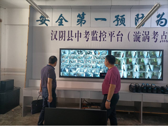 检查组一行分别到旋涡初中、职教中心、汉阴中学三个考点,查看了各考点试卷保密室、视频监控室、外语听力播放室、铃声控制室、考务办公室等处,详细询问考点试卷保密值守安排,外语听力演练,视频监控设备运行等情况。