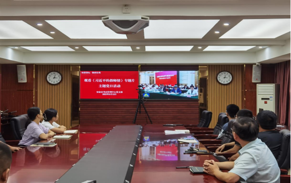 9月12日下午,安康市考试管理中心组织全体干部职工集中观看专题片《习近平的教师情》,深切感受习近平总书记对默默奋战在三尺讲台上的教师们的敬重之情、对昔日教导过自己的老师们的感恩之情,对有志于加入教师队伍的优秀青年们的勉励之情、对扎根边远贫困地区的教师们的希冀之情,重温总书记与教师之间的暖心故事,收到了很好效果。