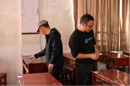 会后,全体考务工作人员严格按照考试安排布置了考场,相关负责人对各考场布置情况做了全面、细致的检查。