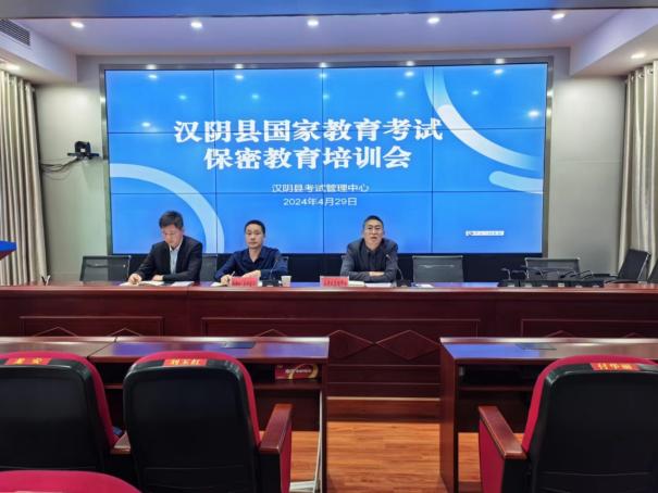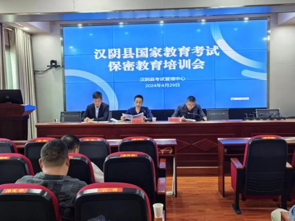 4月29日,安康市汉阴县考试管理中心组织召开国家教育考试保密教育培训会。汉阴县县委保密局机要干部、县考试管理中心全体干部、试卷运输、试卷安全保密值守等共计30余人参加会议。