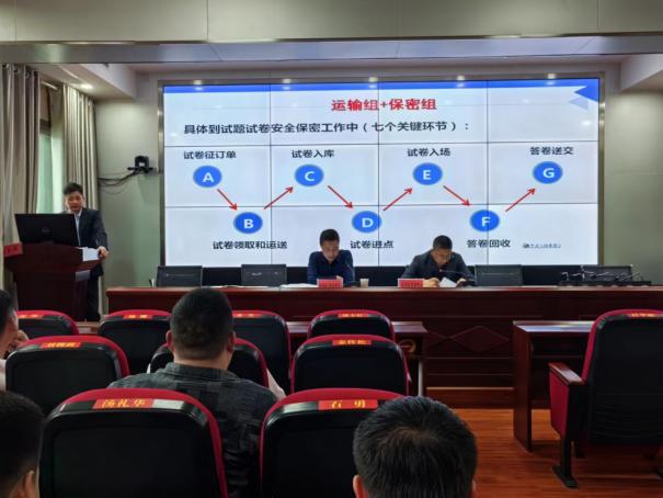 首先,县委保密局机要干部介绍了国家保密部门是如何界定保密等级和保密时限,以及解密要求等保密知识。还组织学习了教育部、国家保密局等十部委印发的《国家统一考试保密管理办法》节选,对涉及县级层面的国家教育考试条款进行了逐一解读,给全体参会人员上了一堂安全保密知识课,知晓了国家教育考试安全保密的重要性。