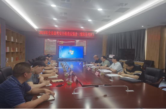 在督察反馈会上,安康市紫阳县考试招生工作站站长就紫阳县2024年高考安全工作开展情况作了汇报。听取汇报后,检查组对紫阳县高考安全工作给予肯定并提出反馈意见和建议。督查组强调,高考事关广大考生切身利益,务必要周密安排部署,各部门要统一认识,牢固树立高考“一盘棋”思想,要进一步加强防范高考手机作弊,强化入场安检演练和考前诚信教育;要做好应急预案工作,加强考前问题排查整改,确保2024年高考工作安全、平稳、有序。