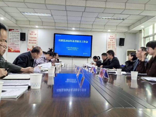 会议传达了省市高考报名文件精神,学习了汉阴县考试管理中心《关于做好2026年陕西省普通高等学校招生考试报名工作的通知》(汉试发〔2025〕)文件,从报名准备、条件、时间、程序、体检等进行了安排部署。