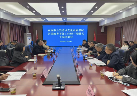 2026年3月10日,安康市召开2026年高职院校分类考试文化素质省级统考考务暨中考报名工作会议。会上,通报了有关情况,听取了工作汇报,开展了培训交流,部署了有关考务工作。