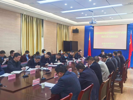 4月6日下午,商洛市商南县召开全县2023年初中学考体育考试工作培训会,县科教体局领导及相关股室负责人和县考试管理中心全体干部、全县13所中学校长、学考业务干部、相关体育教师参加了会议。