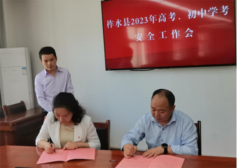 会上,县科教局对2023年全县高考、初中学考安全工作进行了全面安排部署。县公安局、卫健局、市监局3个部门就做好“两考”安全保障工作进行了发言。会议现场与考区、考点、招委会成员单位签订了考试安全目标责任书。