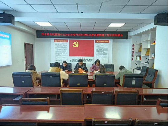 会上,县考试管理中心副主任简米良宣读了《关于2024年春节后开展纪律作风教育整顿工作的实施方案》,安排了纪律作风整顿和当前重点工作,张龙主任作了动员讲话。