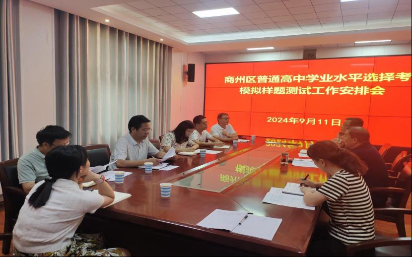 9月11日下午3时,商州区召开普通高中学业水平考试选择考模拟样题测试工作安排会议,安排考试有关工作,全区各高中学校分管校长、高考业务人员参加会议。
