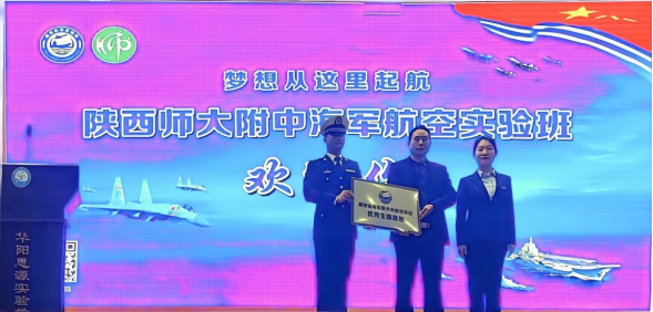 宣讲环节结束后,招飞工作组对过去一年学校在招飞方面做出的成绩表示充分肯定,向洛南县华阳思源实验学校授予“陕西省海军青少年航空学校优秀生源基地”光荣匾牌。
