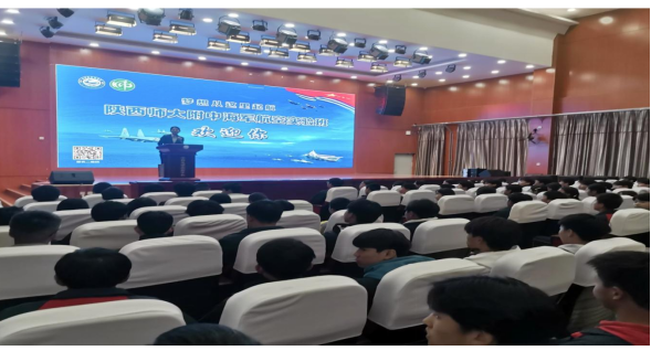 海军招飞局工作人员通过大屏幕播放了2025年海军招飞宣传片,宣传片中的内容获得了同学们的阵阵惊呼和掌声!工作人员介绍了我国海军招飞的基本情况,从招飞报名基本条件、选拔程序、培养模式、相关待遇、就业情况等进行了讲解,同时对同学们关注的问题进行了详细解答。