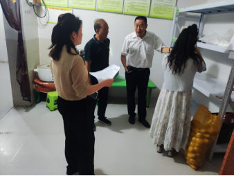 丹凤县考试管理中心检查组在竹林关镇中街幼儿园检查食材储藏室