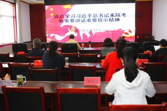近日,商洛市教育考试管理中心召开全体干部职工会议,专题传达学习习近平总书记来陕考察重要讲话重要指示精神,安排学习宣传贯彻落实工作。