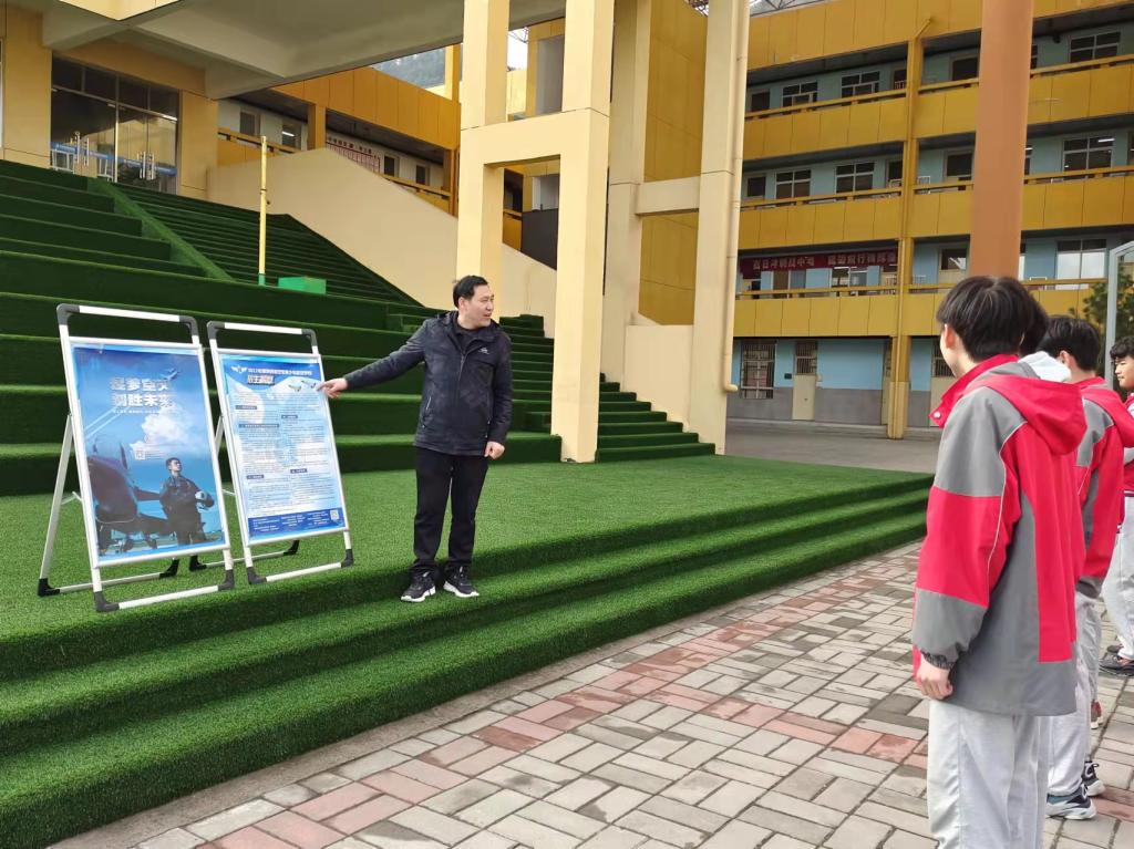 各初中学校把空军招飞及海军招生宣传动员工作纳入学生国防教育、爱国主义教育内容之中,宣传我国空军、海军近年发展取得的巨大成就,观看神舟十三空中课堂,激发学生飞天情怀和理想以及为之奋斗的动力。积极对踊跃报名的学生视力、身高、体重、年龄及成绩等按照简章进行初检,让初检合格学生在两个青航校网站网上报名。对基本合格学生实施保苗工程,体育教师、学科教师对合格学生的身体素质和各学科成绩分析研究,采取“一对一”提升补短措施,促使有更多学生在定选检测中合格,力促为青航校输送更多优秀学子,圆梦空天。