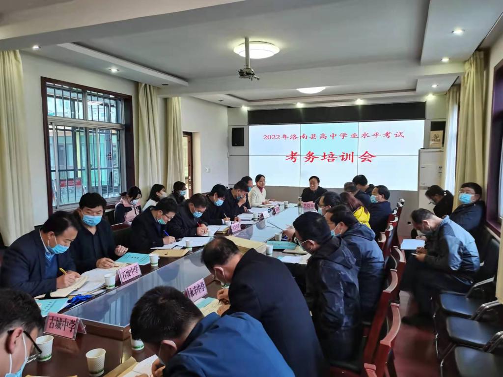 4月1日,洛南县召开2022年高中学业水平考试考务培训工作会议,安排部署学考考务组织、考试安全保密管理和考试环境保障工作。各高中学校校长、高三年级主管、高二年级主管和考点主考、副主考、考务工作人员,以及考试管理中心全体人员共计20余人参加会议。